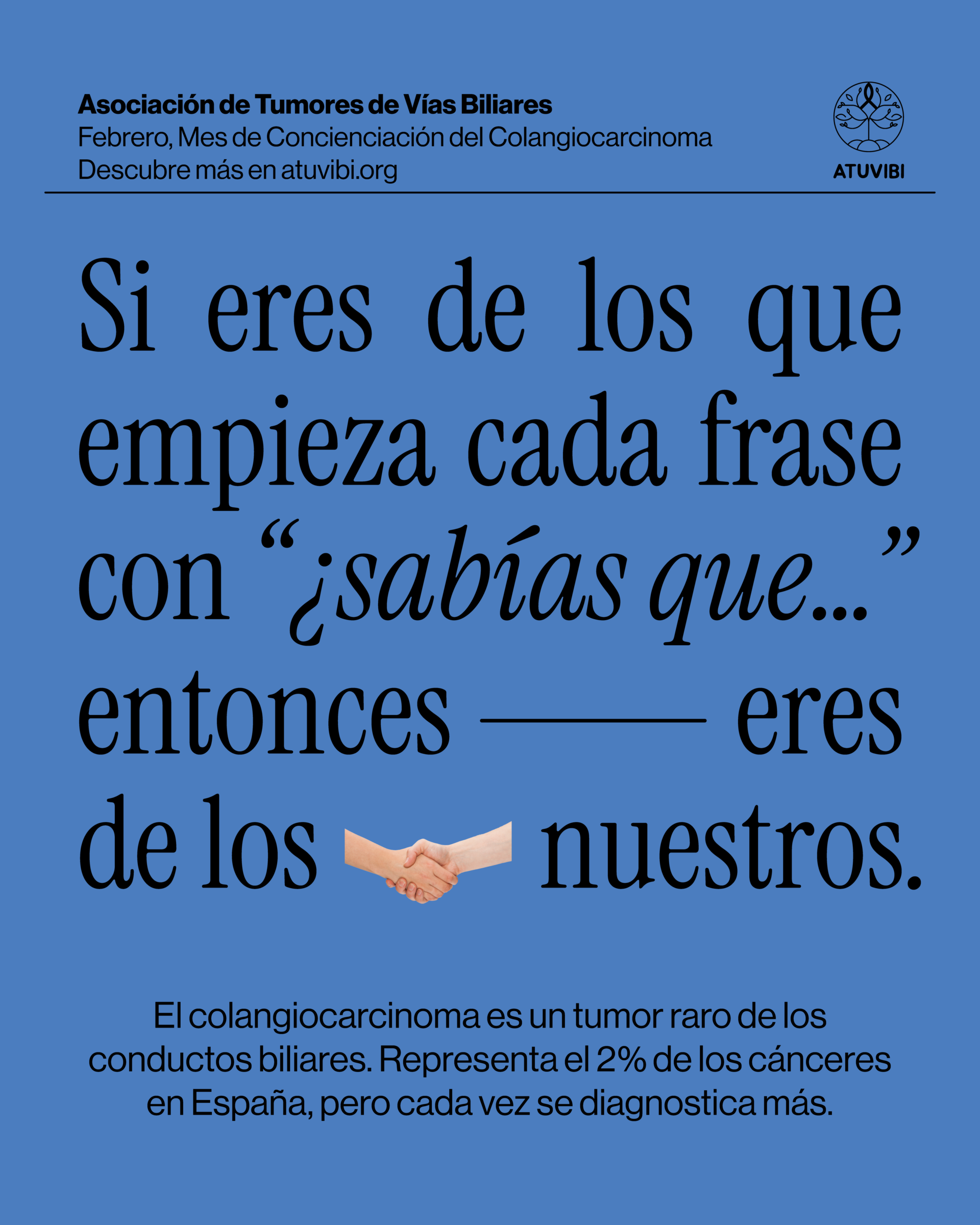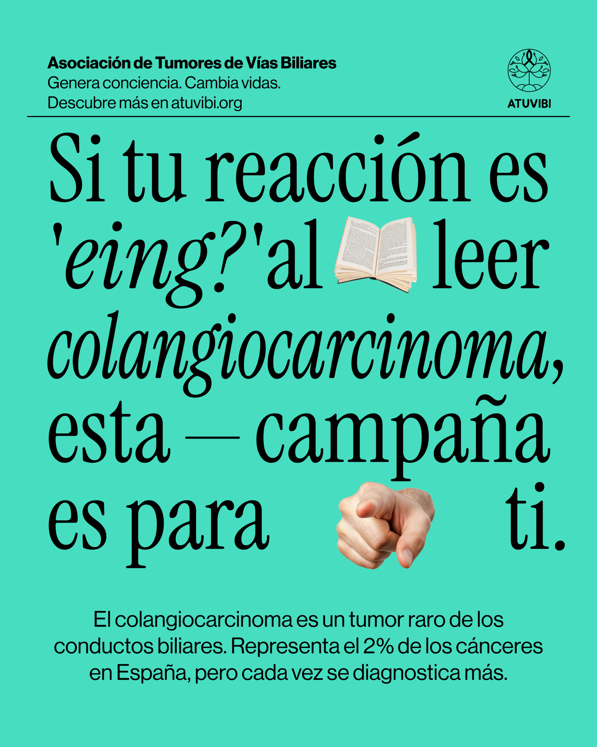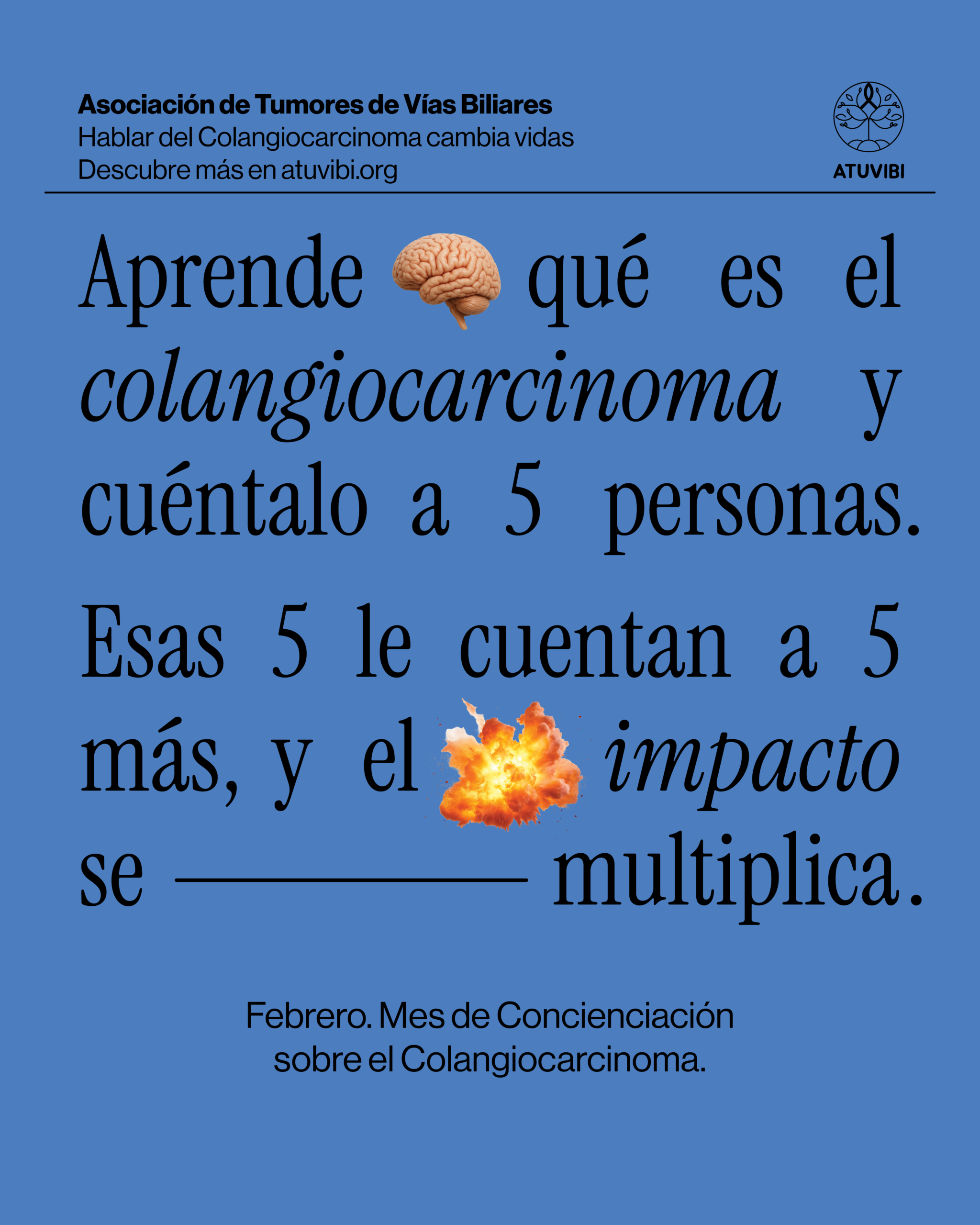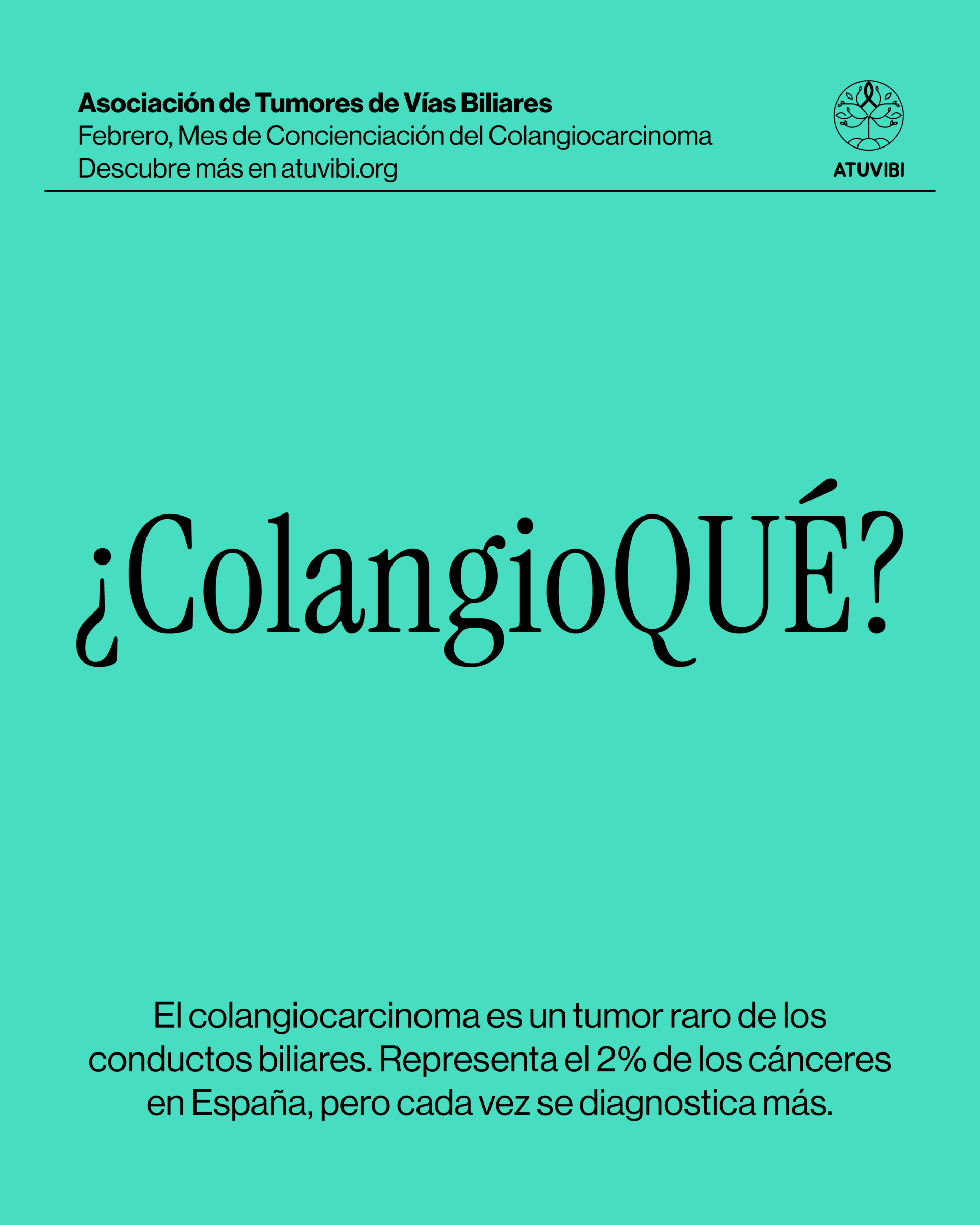 Febrero es el Mes de Concienciación sobre el Colangiocarcinoma, un cáncer poco frecuente de las vías biliares que, a día de hoy, sigue siendo desconocido para gran parte de la población. De esa falta de conocimiento nace «¿ColangioQUÉ?», una campaña de concienciación impulsada por ATUVIBI que busca poner nombre, rostro y contexto a una enfermedad que la gran mayoría de personas afectadas descubren demasiado tarde.