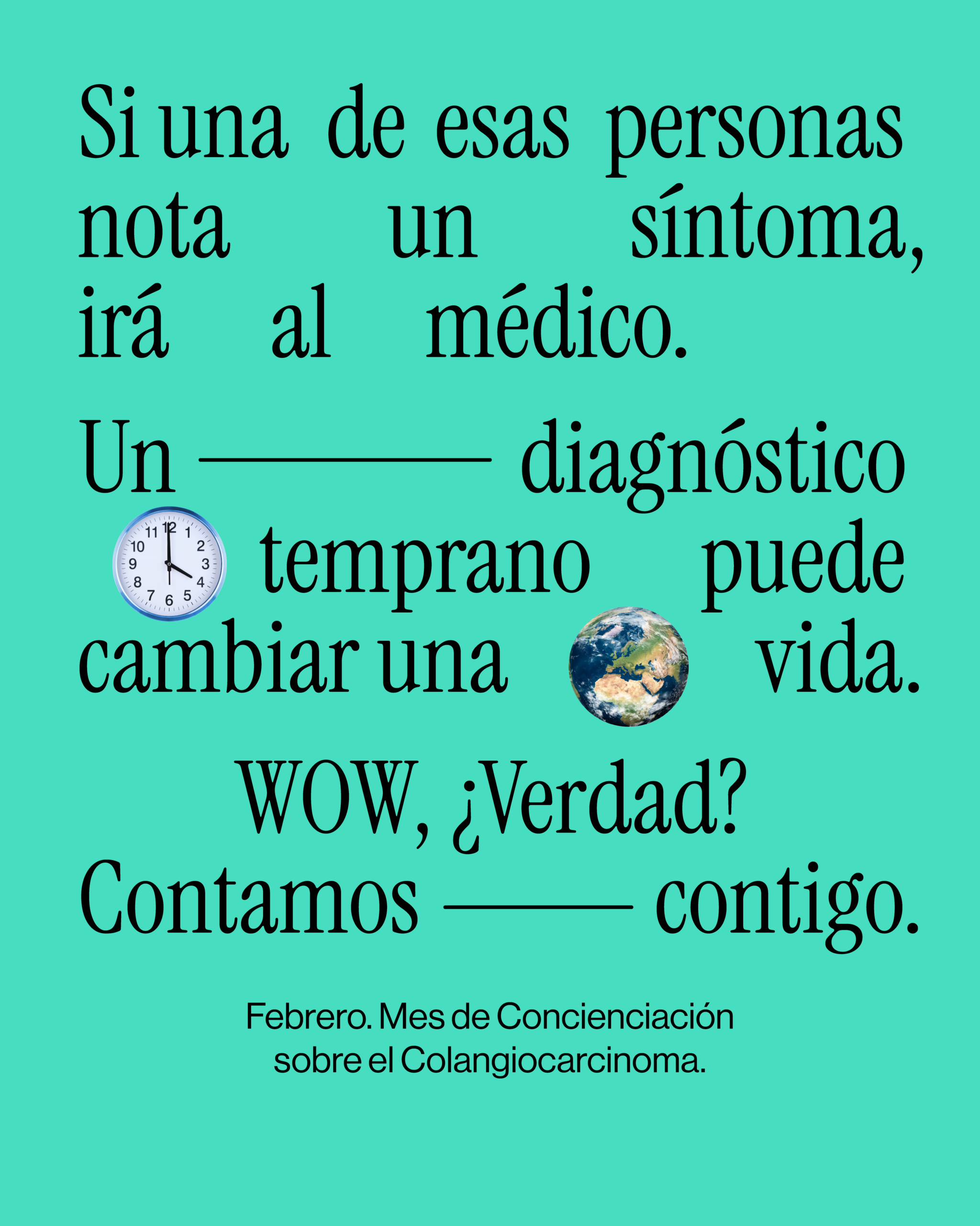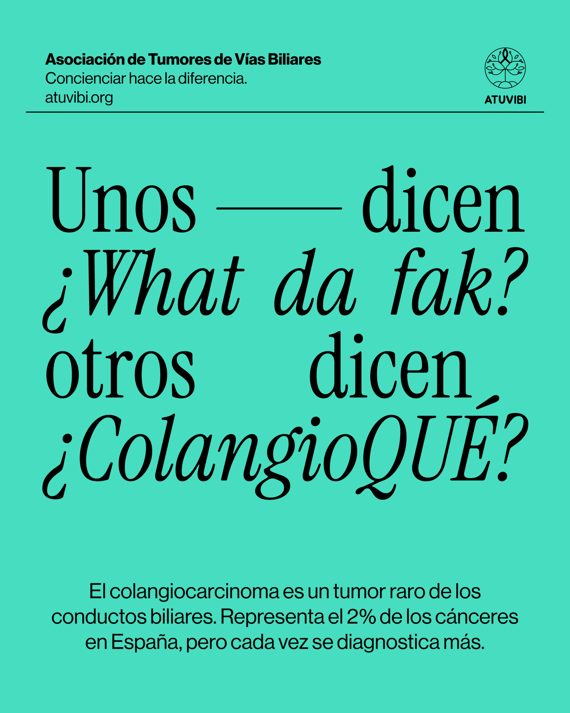 «¿ColangioQUÉ?» apela a esa reacción habitual cuando se recibe el diagnóstico de una enfermedad desconocida y que es incluso difícil de pronunciar, para convertirla en una oportunidad: la de informar, generar conciencia y abrir conversación. A través de gráficas claras, mensajes cercanos y un tono humano con un sutil toque de humor, la campaña presenta el colangiocarcinoma desde lo esencial: sus síntomas, su impacto, la importancia de reconocerlo a tiempo y el papel clave de la investigación.
